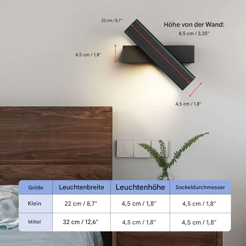 Diese Wandleuchte besteht aus langlebigem Aluminium und überzeugt durch ihre lange Lebensdauer sowie ihr minimalistisches Design. Der Acryl-Lampenschirm sorgt für einen eleganten, modernen Look und verteilt das Licht gleichmäßig im Raum. Dank der 360° drehbaren Konstruktion lässt sich die Lichtausrichtung mühelos anpassen. Die dreifarbige Lichtquelle kann individuell eingestellt werden – perfekt, um verschiedene stimmungsvolle Innenraumambientes zu schaffen.